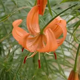 岷江百合是百合科百合属的多年生鳞茎草本植物。鳞茎宽卵圆形,鳞片披针形,茎有小乳头状突起;狭条形叶散生,…