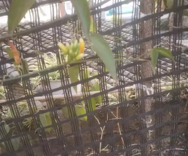 花黄色或杂以紫红色条纹,少数;总花梗和花梗被黄绿色短柔毛;小苞片2枚,长约1厘米,开花前紧包着花蕾;萼管长约7毫米,檐部裂片披针状长圆形,长约1.2厘米,花后反折;花瓣倒卵形,与萼裂片近等长,边缘波状,皱折;雄蕊长1.2-1.5厘米,近基部被柔毛,花丝分离部分长约7毫米,花药椭圆形,长2.5毫米;子房圆柱形,长约8毫米,微弯,被毛。