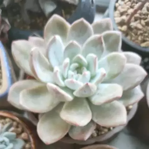大和锦是景天科拟石莲花属的多肉植物。肉质叶排成紧密的莲座状,广卵形至散三角卵形,背面突起呈龙骨状,…
