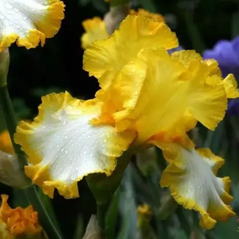 德国鸢尾,为鸢尾科鸢尾属的植物。根状茎粗壮,扁圆形,有环纹;叶绿色灰绿色,堂具白粉,…