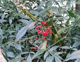 南天竹,小檗科南天竹属常绿小灌木植物,茎干较高,表面光滑无毛,红色;叶较小,叶片薄,…