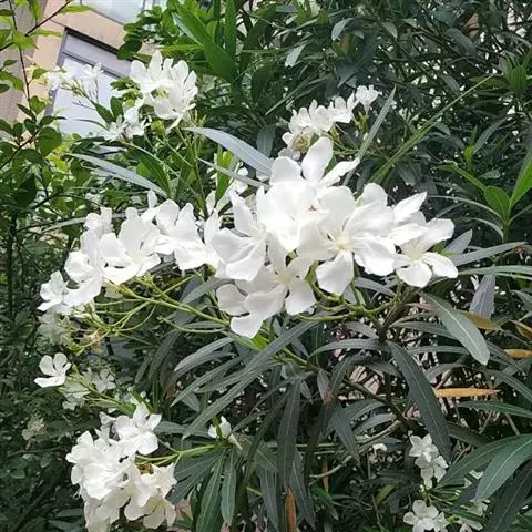 白花夹竹桃是夹竹桃科、夹竹桃属植物夹竹桃的栽培品种。常绿直立大灌木,枝条灰绿色;嫩枝条具稜,被微毛,…
