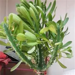 霸王鞭,是大戟科大戟属的多年生肉质灌木,全株含白色乳汁;茎直立,茎基部圆柱形,上部4~5纵棱,…