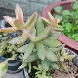 灯美人是景天科的园艺品种,多肉植物。叶片近柱状,丛生,在日照时间长、温差大的环境下会呈现橙粉色。