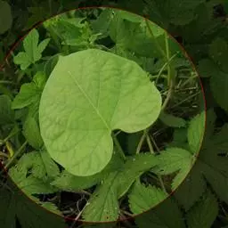 叶圆心形或宽卵状心形,长4-18厘米,宽3.5-16.5厘米,基部圆,心形,顶端锐尖、骤尖或渐尖,通常全缘,偶有3裂,两面疏或密被刚伏毛;叶柄长2-12厘米,毛被与茎同。