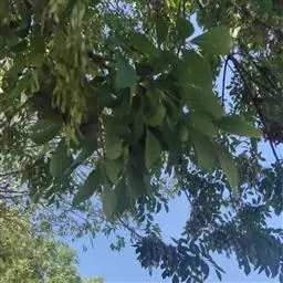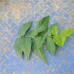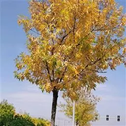 落叶大乔木,高达19米,胸径达1.5米;树皮深灰色,老时纵裂;营养枝常呈棘刺状。小枝挺直,被细绒毛或无毛。羽状复叶长7-15厘米;叶柄长3厘米,基部不增厚;叶轴具狭翅,小叶着生处有关节,至少在节上被短柔毛;小叶7-9(-11)枚,革质,披针形至卵状披针形,长1.7-5厘米,宽0.6-1.8厘米,先端渐尖,基部楔形,叶缘具锐锯齿,上面无毛,下面沿中脉基部被短柔毛,侧脉6-7对;小叶柄长3-4毫米,被细柔毛。