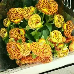 荷包花(学名:Calceolaria crenatiflora Cav.)是玄参科、蒲包花属多年生草本植物,植株高可达30厘米,全株 茎、枝、叶上有细小茸毛,叶片卵形对生。花形别致,花冠二唇状,上唇瓣直立较小,下唇瓣膨大似蒲包状,中间形成空室,柱头着生在两个囊状物之间。花色变化丰富,单色品种有黄、白、红等 深浅不同的花色,复色则在各底色上着生橙、粉、褐红等斑点。