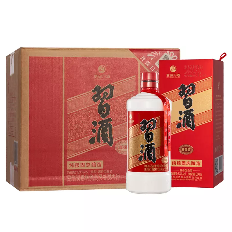 习酒,秉承中国酱香白酒的传统工艺,采用纯粮固态酿造。以本地优质糯高粱、小麦、水为原料,经两次投料、九次蒸煮,八次加曲发酵、七次取酒,通过高温制曲、堆积、发酵、流酒和长期贮存的特殊工艺精制而成。其产品采用不同轮次、不同典型体、不同酒度、不同酒龄的基酒精心设计,以酒勾酒,形成“微黄透明、酱香突出、醇厚丰满、细腻体净、回味悠长、空杯留香持久”的典型风格特征。