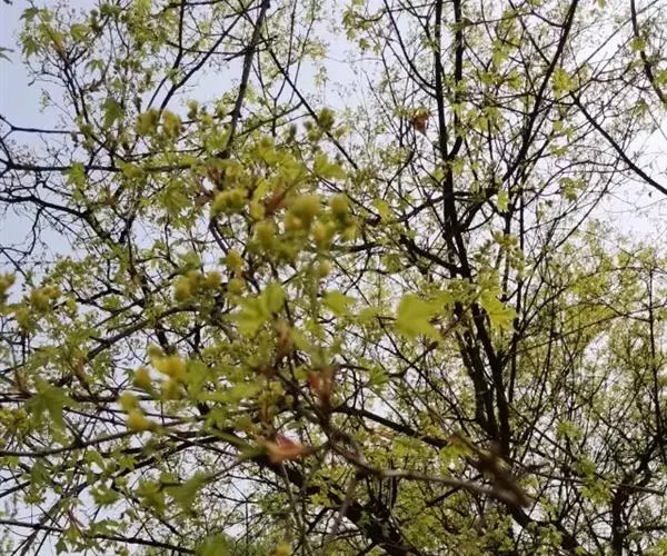 落叶乔木,高达10余米;树皮灰褐色,纵裂。分枝广展,小枝有叶痕。