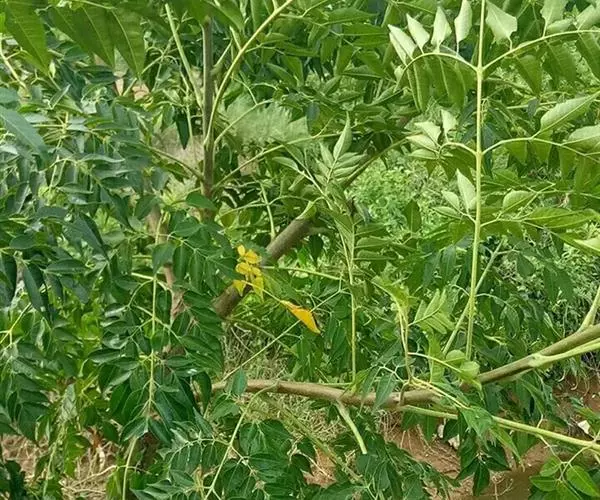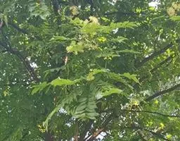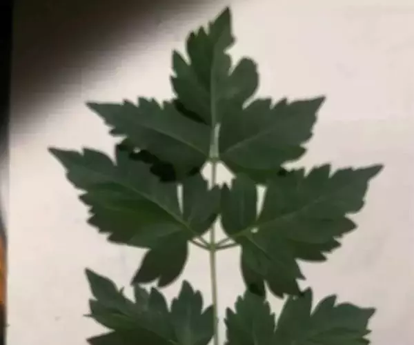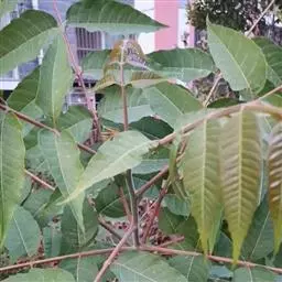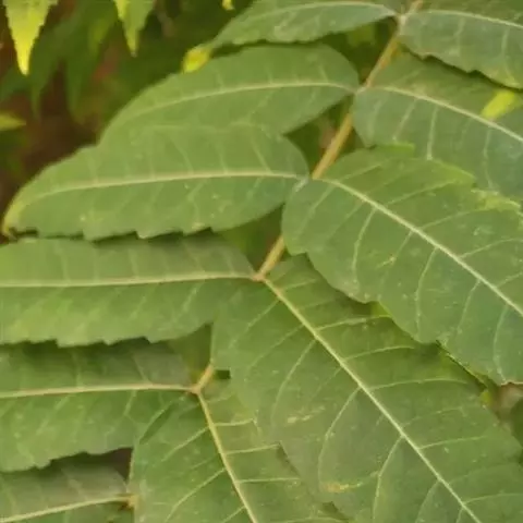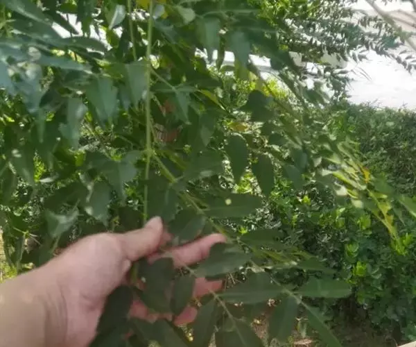 叶为2-3回奇数羽状复叶,长20-40厘米;小叶对生,卵形、椭圆形至披针形,顶生一片通常略大,长3-7厘米,宽2-3厘米,先端短渐尖,基部楔形或宽楔形,多少偏斜,边缘有钝锯齿,幼时被星状毛,后两面均无毛,侧脉每边12-16条,广展,向上斜举。