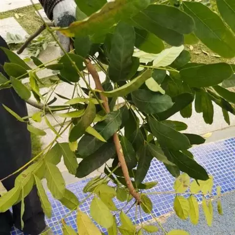 植物-苦楝(图1) 楝树种子为肉质果,种子成熟后由绿色变为淡黄色。11月可以采种,采后放置在干燥通风处保存。种皮结构坚硬、致密,具有不透性,不经处理,种子发芽率极低。播种前将种子在阳光下曝晒2-3天,再放人60-70℃的热水中浸泡,适当沤制,使果皮变软,再将其揉搓,用水将果肉淘洗干净。另一种方法是在播种前用0.5%高锰酸钾溶液浸泡2-3分钟,用清水冲洗干净即可。