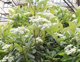 皱叶荚蒾是五福花科荚蒾属的小乔木植物。植株高达4米;叶柄及花序均被由黄白色、黄褐色或红褐色簇状毛组成的厚绒毛;小枝粗壮,稍有棱角;叶革质,卵状矩圆形至卵状披针形;聚伞花序稠密,总花梗粗,四角状,花冠呈现白色,雄蕊高出花冠;果实红色,后变黑色,宽椭圆形,无毛;花期为4-5月;果熟期为9-10月。皱叶荚蒾原产于中国,分布于陕西、湖北、四川及贵州等地。生长于山坡林下或灌丛中,海拔800-2400米。其性喜好阳光,耐半阴,喜温暖,有一定的耐寒性,喜湿润,不耐涝,耐中度盐碱,但在深厚肥沃、排水良好的中性或微酸性沙质土壤中生长更好,耐修剪,生长缓慢。其一般的繁殖方式为播种和扦插繁殖。皱叶荚蒾味苦,性凉。具有清热解毒、凉血止血的功效。可用于湿热痢疾、痈疽疮疖、咳血、吐血、便血、跌打损伤等疾病。皱叶荚蒾给人以郁郁葱葱的景象,全年观叶、春季观花