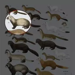 美洲水鼬是食肉目鼬科鼬属哺乳动物,又称水貂。体毛黄褐色,颌部有白斑。头小;眼圆;耳呈半圆形,…