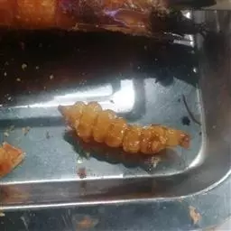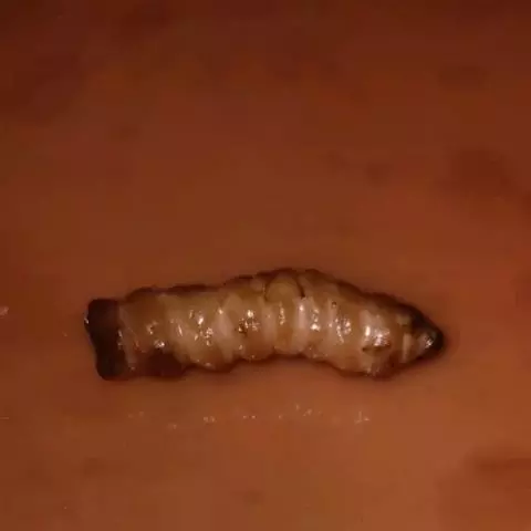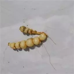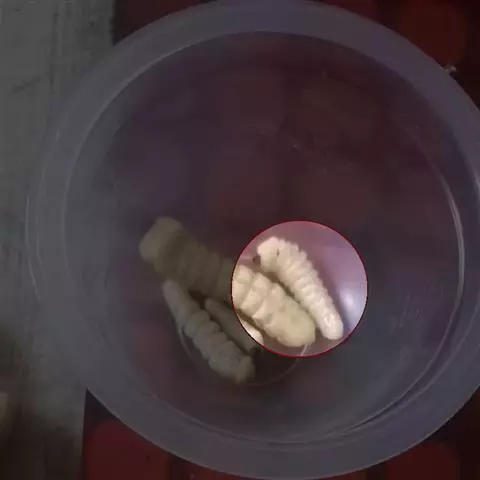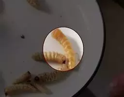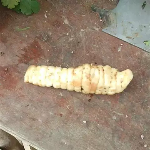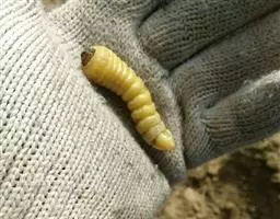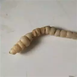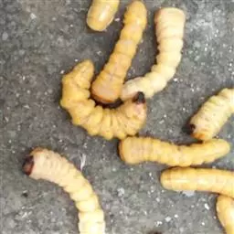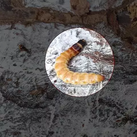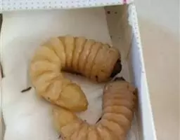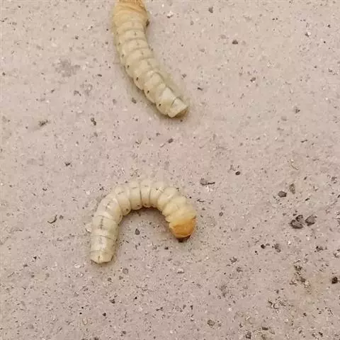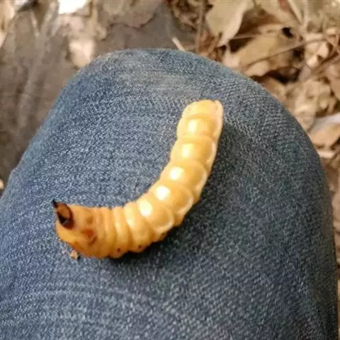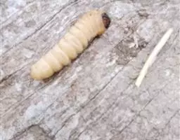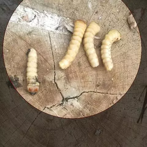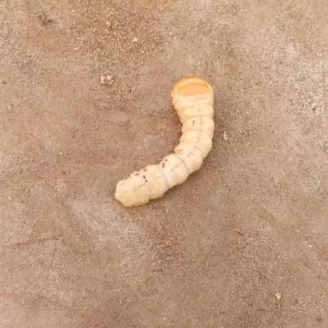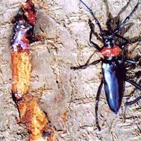 斗米虫为锈色粒肩天牛的幼虫,锈色粒肩天牛主要危害槐树Sophora japonica,…