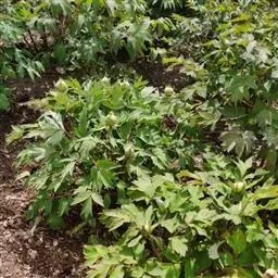 当根系长到6cm以上时,已经有褐色的老根形成,此时扦插苗抗逆性提高了,可以适时移栽。移栽最好选择阴天进行,选择露地畦栽。事先整好平畦(1.2m×5.0m)。为防止发生立枯病,在畦面上撒多菌灵(3~5g/㎡),然后用平耙耧匀,开深10cm定植沟,10cm一株排列摆好苗,回土扶正踩实。做到根系暴露在阳光下的时间尽量短,行距30cm,每畦3行(150株/畦),浇透水,上搭遮荫网。移栽后如遇大晴天和大风天,可在中午用喷雾器往叶片上喷水3~4次。土壤略变硬时,及时用小锄松土,移栽20天后把遮荫网撤去,以后适时锄草、浇水、追肥和打药。