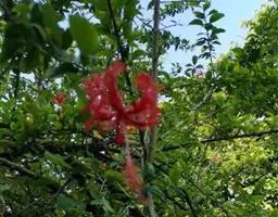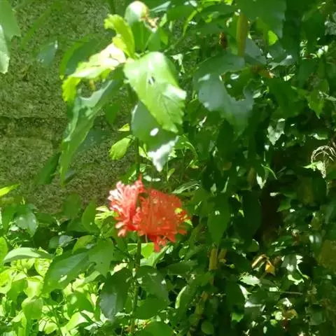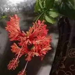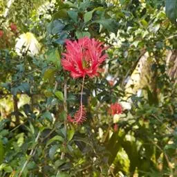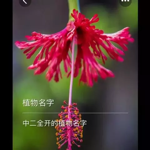形态特征:同扶桑基本一致,主要区别为花梗细长,大而下垂,花瓣深烈成流苏状,而且向上卷,如同垂吊的花灯;单体雄蕊和雌蕊要比花冠长很多,远伸出花冠外。