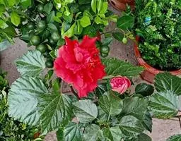扶桑(拉丁学名:Hibiscus rosa-sinensis)别名:佛槿、朱槿、佛桑、大红花、赤槿、日及、木槿、红扶桑、红木槿、桑槿、火红花、照殿红、宋槿、二红花、花上花、土红花、假牡丹、吊兰牡丹、中国蔷薇。