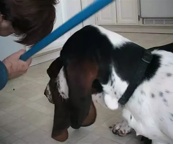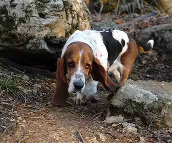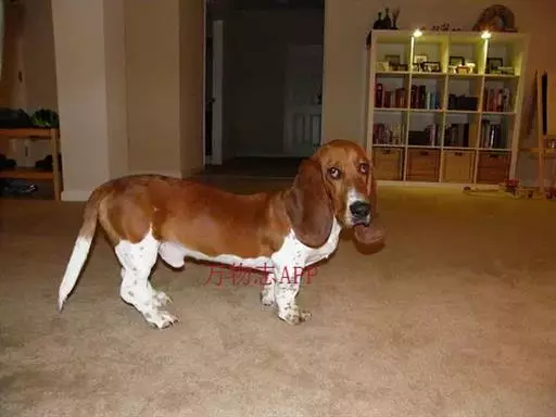 巴吉度猎犬(Basset Hound)也有的称法国短脚猎犬。体高30-48厘米,体重21-25公斤,原产法国,据说是由埃及格雷特猎犬延续繁衍而来的。该犬毛质为硬性滑质短毛,皮肤有弹性,毛色为猎犬的颜色,由黑色、黄褐色、白色构成三色毛。长身短脚,大而长的垂耳、鼻子嗅觉很敏锐。原被训练为专门捕捉野免、雉鸡等。其腿虽短,但因具有敏锐的嗅觉和长久的耐力,仍不失为追捕猎物的好手。