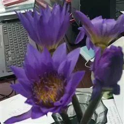 蓝鸟(学名:Nymphaea 'Blue Bird'):是多年生水生草本;根状茎肥厚。叶二型:浮水叶圆形或卵形,基部具弯缺,心形或箭形,常无出水叶;沉水叶薄膜质,脆弱。花形美丽,浮在或高出水面;萼片4,近离生;花瓣成多轮,心皮环状,贴生且半沉没在肉质杯状花托,且在下部与其部分地愈合,上部延伸成花柱,柱头成凹入柱头盘,胚珠倒生,垂生在子房内壁。浆果海绵质,不规则开裂,在水面下成熟;种子坚硬,为胶质物包裹。