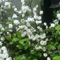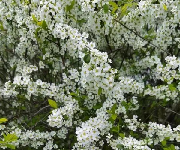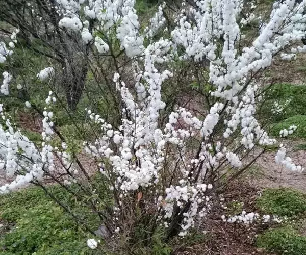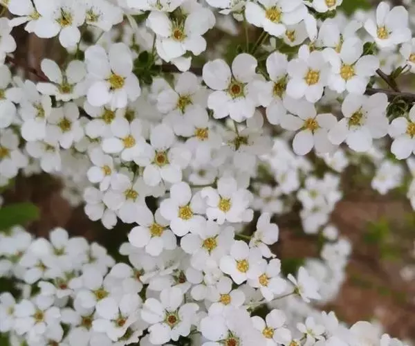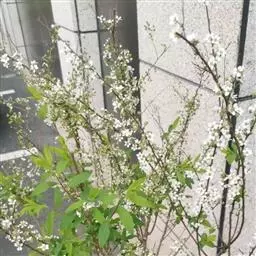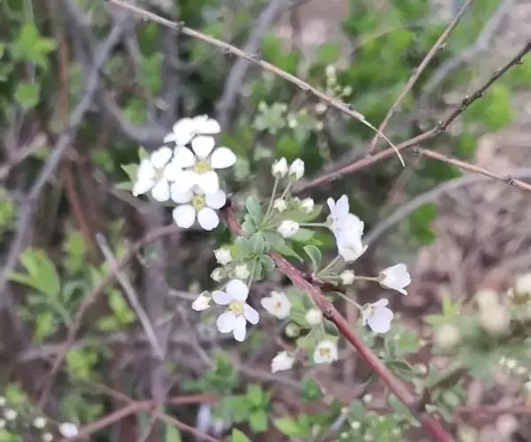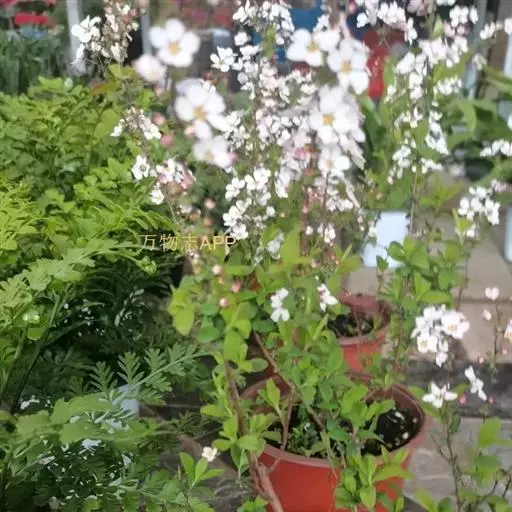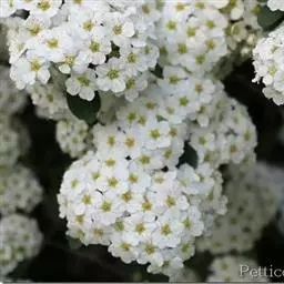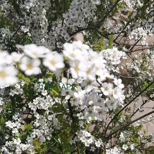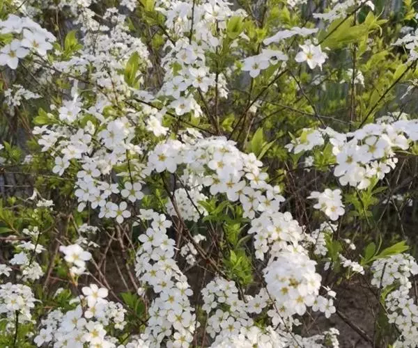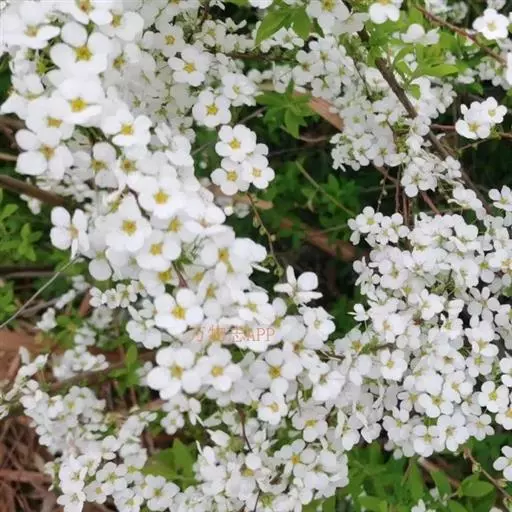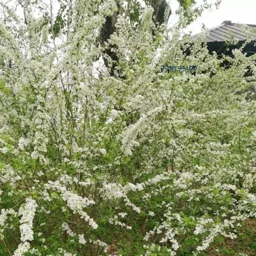 珍珠绣线菊(学名:Spiraea thunbergii Bl.):蔷薇科、绣线菊属灌木,高可达1.5米;枝条呈弧形弯曲细长开张,小枝有稜角,无毛;叶片线状披针形,基部狭楔形,叶柄极短或近无柄,伞形花序无总梗,花3-7朵,基部簇生数枚小形叶片;萼筒钟状,萼片三角形或卵状三角形,花瓣倒卵形或近圆形,白色;花盘圆环形,子房无毛或微被短柔毛,蓇葖果开张,4-5月开花,7月结果。