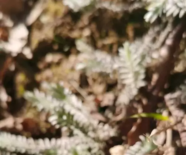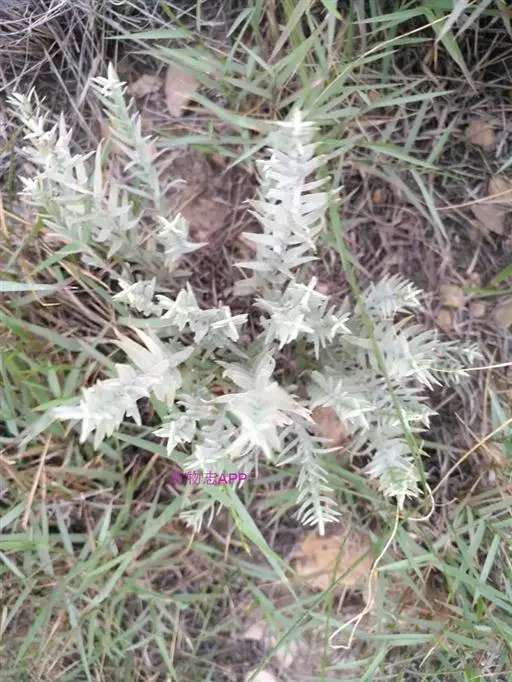 多年生草本,高15-23厘米,常有残留的隔年枯茎,全体因密被棉毛而呈灰白色,上部近花处除被棉毛外,还具腺毛。主根粗短,下部发出之许弯曲支根,成密丛。茎多数,丛生,基部多倾卧或弯曲,老时木质化,通常不分枝。叶交互对生,下部者间距极短,仅4毫米,密集,向上逐渐疏离,相隔可达10毫米,至花序附近间距最大,可达16毫米,叶片大小,亦作相同的变异,下方者最小,鳞片状,向上则逐渐增大,成长圆状披针形至线状披针形,通常长12-20毫米,宽2-3毫米,最长可达25毫米,先端锐尖,或锐头而有小凸尖,基部渐狭,多少下延于茎成狭稜,中脉面凹背凸,两面均密被灰白色锦毛,老时上面的毛多少脱落。总状花序顶生;花少数,单生于叶腋,具长2-7毫米之短梗;叶状小苞片二枚,长9-15毫米,宽1-2毫米,生于萼管基部;萼筒状,膜质,被绵毛,或绵毛与腺毛相杂。管长5-7毫米。上有9条凸起的粗肋,其中4条分别通入萼齿;萼齿4枚,草质,线形或线状披针形而先端渐尖,与萼管等长或稍长,长5-6毫米,宽1-2毫米,有时长达10毫米,宽3毫米;花冠谈紫色或几白色,长约为萼的两倍,长15-18毫米,被少量柔毛,花管细长,近喉处扩大,瓣片二唇形,上唇略作盔状,2裂,下唇3裂,中裂稍大,均为倒卵形,端圆钝,多少开展;雄蕊4枚,二强,着生于花管上,前方一对较长,达7毫米左右,后方一对长约6毫米,花药背着,微露于花冠喉部,药2室,并行,相等,长2.5-2.8毫米,宽0.6-0.8毫米,彼此分离,长卵形,下部渐细,有一小凸尖,纵裂;子房长卵形,花柱细长,先端弯向前方,柱头长圆形。蒴果长圆形,长约9毫米,宽3毫米,厚2毫米,先端渐细而成一稍弯的尖嘴。花期3-4月。