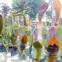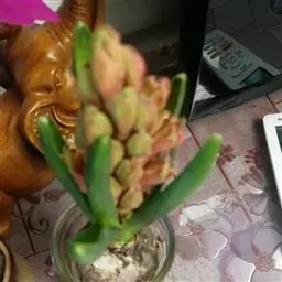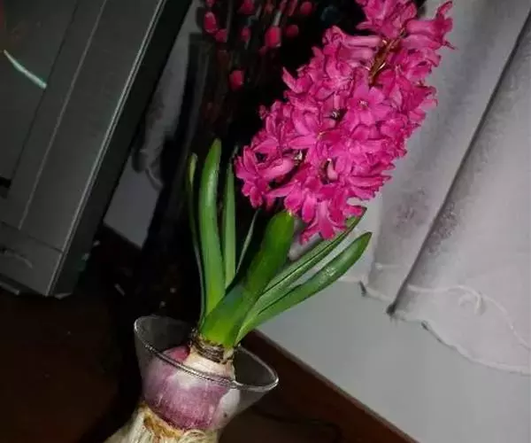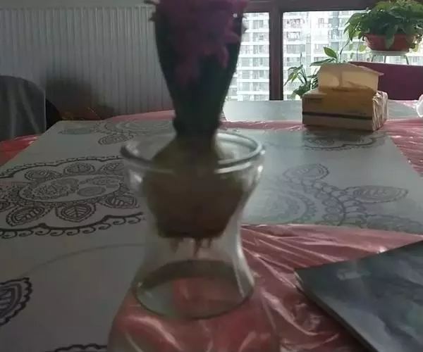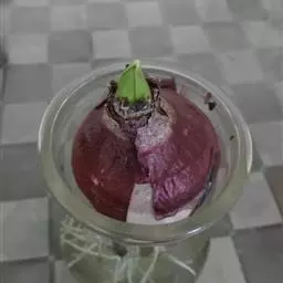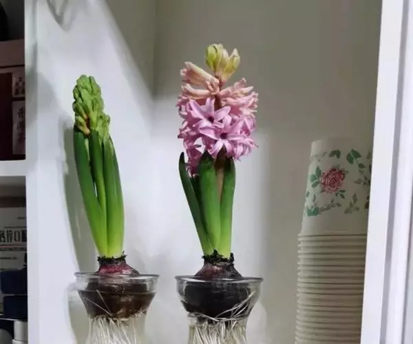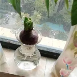 风信子水养要求水位离球茎的底盘要有1-2cm的空间,让根系可以透气呼吸,严禁将水加满没过球茎底部。可在12月份将种球放在阔口有格的玻璃瓶内,加入少许木炭帮助防腐和消毒。其种球仅浸至球底即可,然即放置在阴暗的地方,并用黑布遮住瓶子,这样约经过20多天的全黑环境萌发后,再放到室外让它接受阳光的照射,初期每天照1-2小时,后逐步增至7-8小时,大多数在天气好的情况下,到春节便能开花。