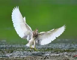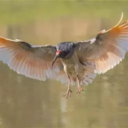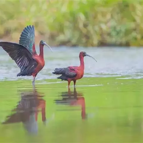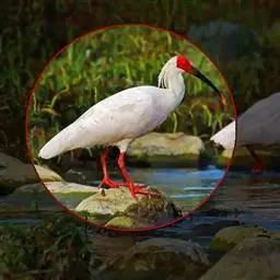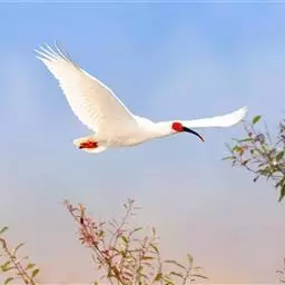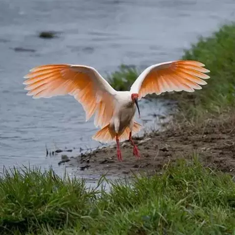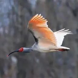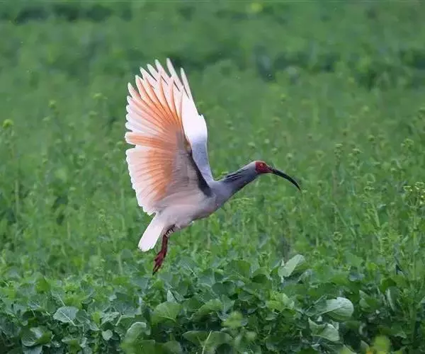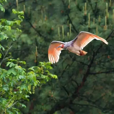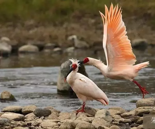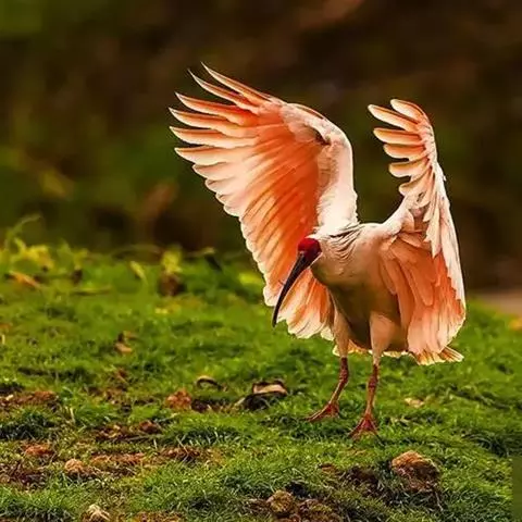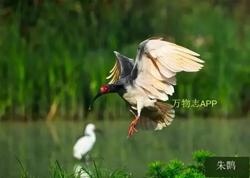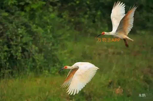 朱鹮(学名:Nipponia nippon):古称朱鹭、红朱鹭,朱鹮系东亚特有种。中等体型,体羽白色,后枕部有长的柳叶形羽冠,额至面颊部皮肤裸露,呈鲜红色;繁殖期时用喙不断啄取从颈部肌肉中分泌的灰色素,涂抹到头部、颈部、上背和两翅羽毛上,使其变成灰黑色。