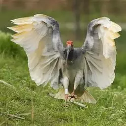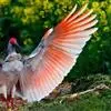 虹膜橙红色,嘴黑色,嘴基及头裸露部分朱红色,跗蹠、爪及胫下部裸露部分亦为朱红色。幼鸟两颊被有绒羽,其余脸部裸露无羽,橙黄色。体羽缀有烟灰色而具玫瑰色光泽。初级飞羽黑褐色,脚淡褐色,虹膜淡黄褐色。