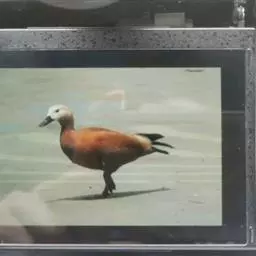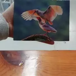 2000年2月25日发行的《国家重点保护野生动物(Ⅰ)级》小型张上,10枚中的第一枚是朱鹮。画面上只见一只朱鹮潇洒地低飞掠过碧绿的稻田、水塘,扇起的翅膀透出淡雅的橙红色,伸着细长的前端向下弯的嘴喙,一双黄亮的眼睛四下寻觅着它喜欢的食物,水中的鱼虾、田螺、青蛙和泥鳅。