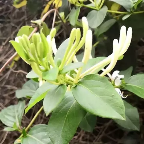 金银花 ,正名为忍冬(学名:Lonicera japonica Thunb. ) 。“金银花”一名出自《本草纲目》 ,由于忍冬花初开为白色,后转为黄色,因此得名金银花。药材金银花为忍冬科忍冬属植物忍冬及同属植物干燥花蕾或带初开的花。