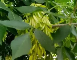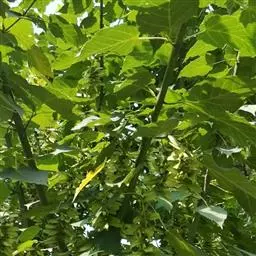 9月份翅果发育成熟、果皮变淡黄褐色时即可采收。选择发育健壮、树势强、无病虫害的树木为采种母树。用高枝剪剪下结果枝条,收集翅果,晾干,搓去果翅,去除果枝,果梗等杂质,风选后取得干洁种子,装袋后置于室内低温贮藏。