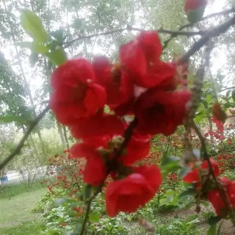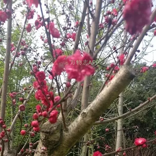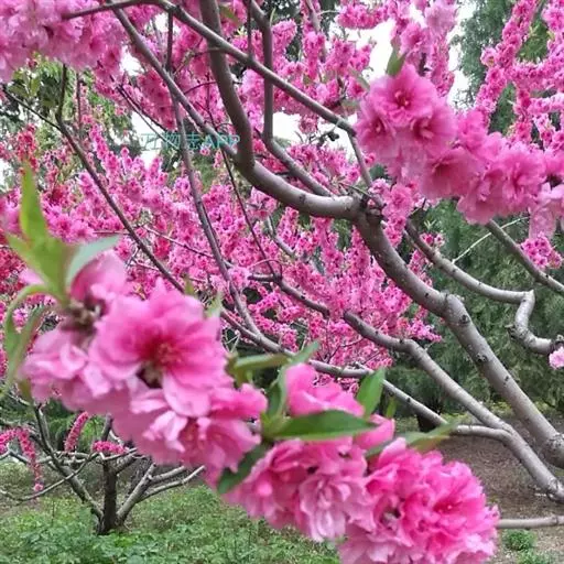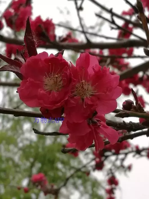 是一种蔷薇科、李属植物,花为牡丹形,呈现亮红色,多年生长,5-20年间都可绽放繁盛的花,可在8月上中旬进行采种。花大红色,半重瓣。花萼2轮,萼筒半球形,绿色。