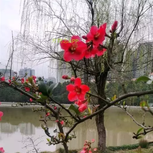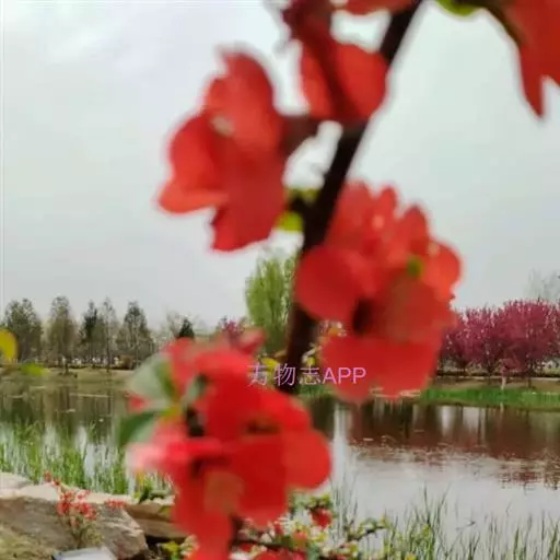 枝干是红褐色而且有光亮的,叶片为椭圆状或者披针形,花为红色。4月份开花,7-8月份结果。