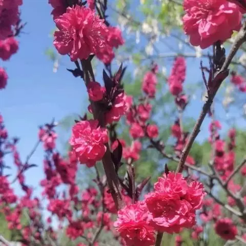 碧桃性喜阳光,耐旱,不耐潮湿的环境。喜欢气候温暖的环境,耐寒性好,能在零下25摄氏度的自然环境安然越冬。碧桃花朵丰腴,色彩鲜艳丰富,花型多。常见的品种有红花绿叶碧桃、红花紫叶碧桃,白红双色洒金碧桃等多个变种。具有很高的观赏价值,在小区、公园、街道随处可见的美丽植物。原产中国,分布在西北、华北、华东、西南等地。世界各国多有引种栽培。