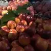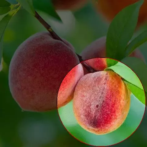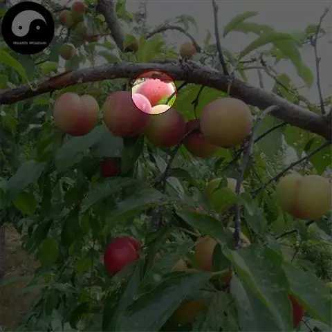 果实形状和大小均有变异,卵形、宽椭圆形或扁圆形,直径(3)5-7(12)厘米,长几与宽相等,色泽变化由淡绿白色至橙黄色,常在向阳面具红晕,外面密被短柔毛,稀无毛,腹缝明显,果梗短而深入果洼;果肉白色、浅绿白色、黄色、橙黄色或红色,多汁有香味,甜或酸甜;核大,离核或粘核,椭圆形或近圆形,两侧扁平,顶端渐尖,表面具纵、横沟纹和孔穴;种仁味苦,稀味甜。花期3-4月,核果广卵圆形,成熟期因品种而异,通常为8-9月。有些品种只开花而不结果实。 [2-3]