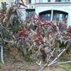 树木修剪要坚持“随树作形,因枝修剪”的原则。对有“中心主干”或“树中树”的碧桃苗木,要充分利用现有的枝条,整成疏散分层形或延迟开心形,即主枝分为2-3层,最下面一层留3个主枝,中间的一层留2个主枝,最上面的一层留1个主枝或不留主枝。但由于这种树形枝量比较大,为保持树冠内的通风透光,在整形修剪过程中,要特别注意开张主枝的角度,但这种树形随着树龄的增大,枝量的增多,光照条件会逐渐恶化,下层的主枝生长势会逐渐降低,花量减少,走向衰弱。这时可以逐渐去除下层的主枝,从而将树形逐步改造成自然开心形。对这种树进行改造,就要对几大主枝在合适的位置进行回缩,即在主枝上位置较低、长势较弱、角度比较开张的背后侧枝处短截,将主枝头直接换到背后侧枝上,使主枝头的生长点降低,生长势减弱,从而促进了主枝基部芽梢的生长。如果没有合适的侧枝,也可以对主枝保留50厘米至80厘米进行截干,刺激主枝基部潜伏芽的萌发。