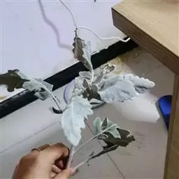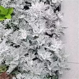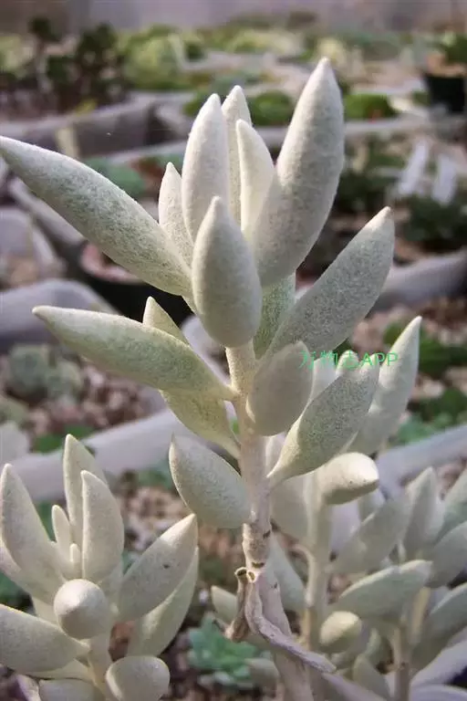 银月叶片特写 多年生植物,叶互生,肉质,呈纺锤状,叶片灰绿色,表面覆蚕丝状白毛。可长成矮灌木状。头状花序,花黄色。