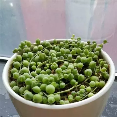 珍珠吊兰因鼓鼓、饱满翠绿的椭圆形小叶子形似珍珠状而得名。又名翡翠珠、 佛珠吊兰、翡翠珠、绿之铃,绿铃。…