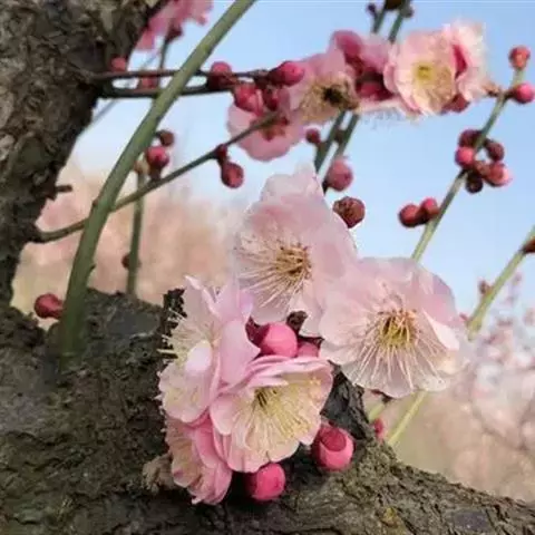 宫粉梅 Rehd.)是蔷薇科、李属植物,梅花品系中真梅系直枝梅类宫粉型,其花复瓣至重瓣,…