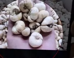 2、珠贝:为完整的鳞茎,呈扁圆形,高1~1.5cm,直径1~2.5cm。表面类白色,外层鳞叶2瓣,肥厚,略似肾形,互相抱合,内有小鳞叶2~3枚和干缩的残茎。