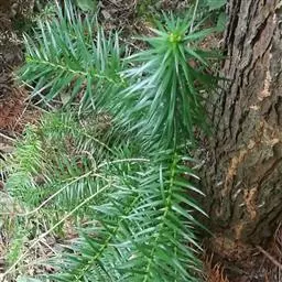 池杉 乔木,在原产地高达25米;树干基部膨大,通常有屈膝状的呼吸根(低湿地生长尤为显著);树皮褐色,纵裂,成长条片脱落;枝条向上伸展,树冠较窄,呈尖塔形;当年生小枝绿色,细长,通常微向下弯垂,二年生小枝呈褐红色。