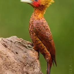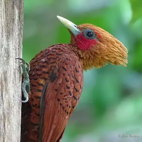 栗啄木鸟:是一种红褐色啄木鸟,体长21厘米。雄性成鸟整个头棕色,…