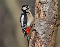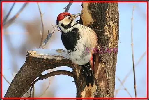 白背啄木鸟(学名:Dendrocopos leucotos)共有10个亚种。中等体型,体长25厘米。特征为下背白色,无论雌雄均臀部红色。脚强健,有趾4个,其中2个向前,2个向后,各趾的趾端均具有锐利的爪,巧于攀登树木。尾羽的羽干刚硬如棘,能以其尖端撑在树干上,助脚支持体重并攀木。嘴强直如凿。舌细长,能伸缩自如,先端并列生短钩。攀木觅食时以嘴叩树,头骨十分坚固,大脑周围有一层绵状骨骼,内含液体,对外力能起缓冲和消震作用;头骨周围还具有起减震作用的肌肉,能把喙尖和头部始终保持在一条直线上。喜栖于老朽树木,每年錾树洞营巢,不怯生。以昆虫为主食,亦吃浆果。为常见的留鸟。主要分布于欧洲北部、小亚细亚、西伯利亚南部、远东、中国、朝鲜和日本。