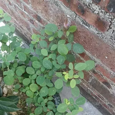 直立或近直立亚灌木,高可达1米。茎柔弱,稍具棱,被稀疏柔毛,分枝多。叶具单小叶;托叶狭三角形或狭卵形,长约1厘米,宽1-3毫米;叶柄长1-2厘米,密被直毛和小钩状毛;小叶纸质,长椭圆状卵形,有时为卵形或披针形,大小变异很大,长3-13厘米,宽2-7厘米,先端急尖,基部圆形,上面除中脉外,其余无毛,下面薄被灰色长柔毛,侧脉每边6-12条,直达叶缘,全缘;小托叶钻形,长2-9毫米;小叶柄长约3毫米,毛被与叶柄同。