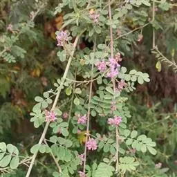 总状花序顶生和腋生,但顶生者有时为圆锥花序,长10-30厘米,总花梗纤细,被短柔毛,花2-6朵生于每一节上,节疏离;苞片针状,脱落;花梗长2-5毫米,被毛;花萼宽钟状,长约2毫米,被糙伏毛,裂片披针形,较萼筒稍长,上部裂片先端微2裂;花冠绿白色长3-4毫米,旗瓣倒卵形,基部渐狭,具不明显的瓣柄,翼瓣长圆形,基部具耳和短瓣柄,龙骨瓣狭倒卵形,无耳;雄蕊二体,长度是:3-4毫米;雌蕊长4-5毫米,子房线形,被毛,花柱上部弯曲。荚果密集,略弯曲,长1.2-2厘米,宽约2.5毫米,腹缝线稍直,背缝线波状,有荚节6-8,荚节近圆形或宽长圆形长2-3毫米,被钩状短柔毛。花期4-8月,果期8-9月 。