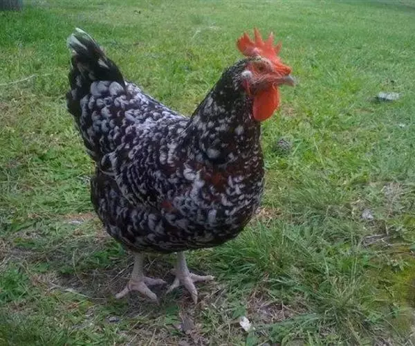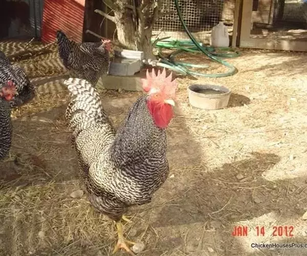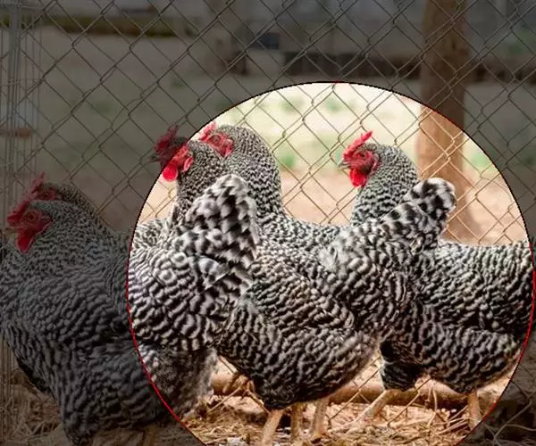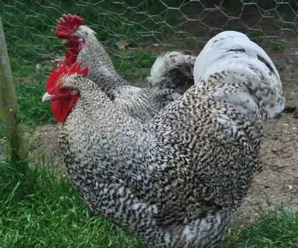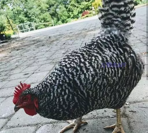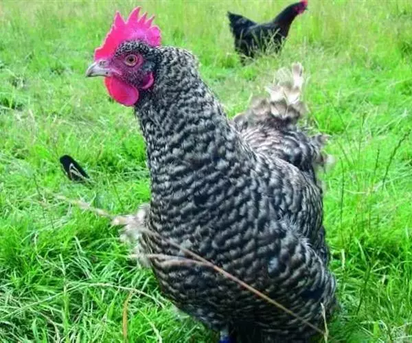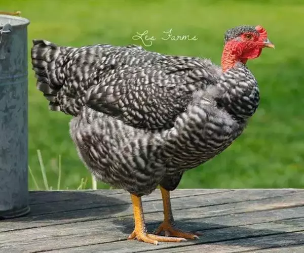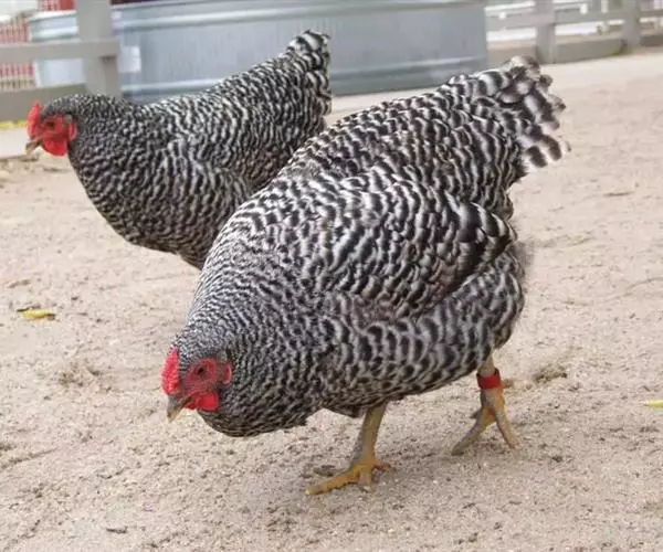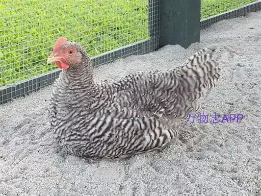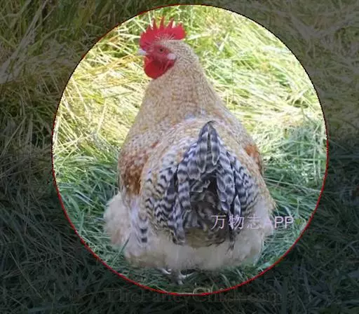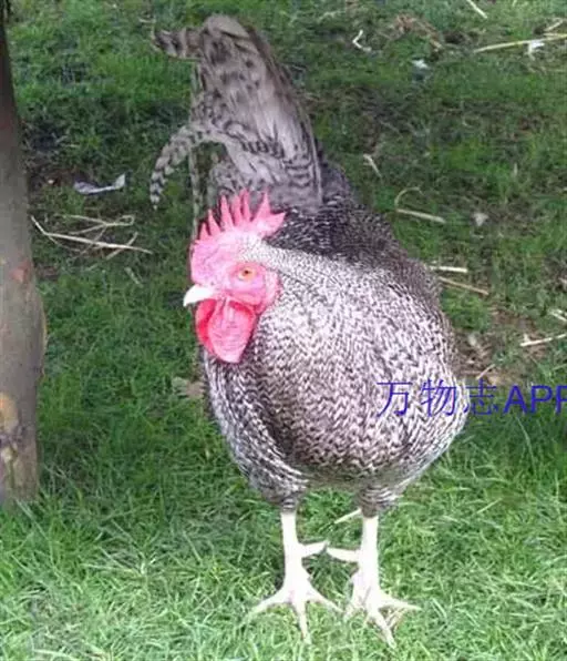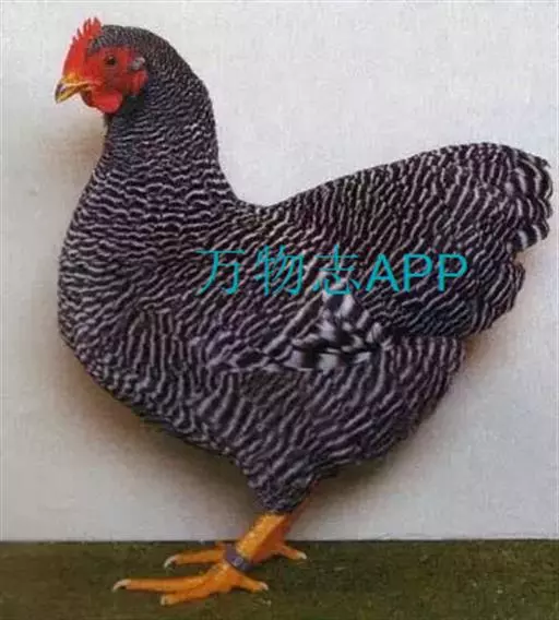 属蛋肉兼用型鸡种。该鸡体型一致,颈部挺立,稍显高昂,前躯稍窄,背长而平直,后躯宽而丰满,腿较长,尾羽高翘,体形呈“元宝”状。横斑羽是该鸡外貌的基本特征。全身大部分羽毛呈黑白相问、宽窄一致的斑纹状。母鸡头部和颈羽边缘镶嵌橘红色或土黄色,羽毛紧密。公鸡颈羽和鞍羽多呈红色,尾羽黑色带有绿色光泽。单冠最多,豆冠、玫瑰冠、豌豆冠和草莓冠较少。喙基部为黑色,边缘及尖端呈白色。虹彩橘红色。胫色以白色为主。爪部颜色大多白色,皮肤白色。成年鸡体重:公1400克,母1260克。180日龄屠宰率:半净膛,公81.2%,母80.0%;全净膛,公71.2%,母68.9%。开产日龄150~180天,在农村一般饲养管理条件下,年产蛋130~150个;较好饲养条件下产蛋180~200个。蛋重45克,蛋壳多为浅褐色 。