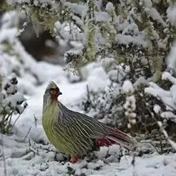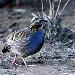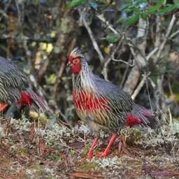 血雉雉科血雉属鸟类,别名血鸡、松花鸡,血雉的雄鸟大覆羽、尾下覆羽、尾上覆羽、脚、头侧、腊膜为红色,…