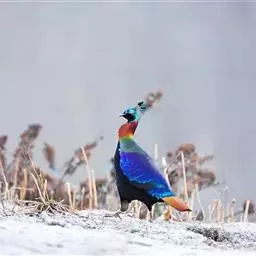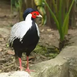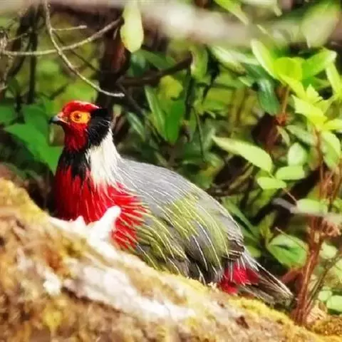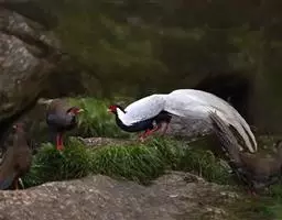 白颈长尾雉:大型鸡类,体长81厘米,体型大小和雉鸡相似。雄鸟头灰褐色,颈白色,脸鲜红色,其上后缘有…