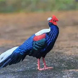 黑长尾雉大型鸡类,体长53~88厘米。雄较雌大。雄鸟通体紫蓝色,脸鲜红色,翅上有一条显著的白色翅斑…