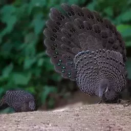 灰孔雀雉:雄鸟体长50-67厘米,体重456-710克;雌鸟体长33-52厘米,体重460-500克。…